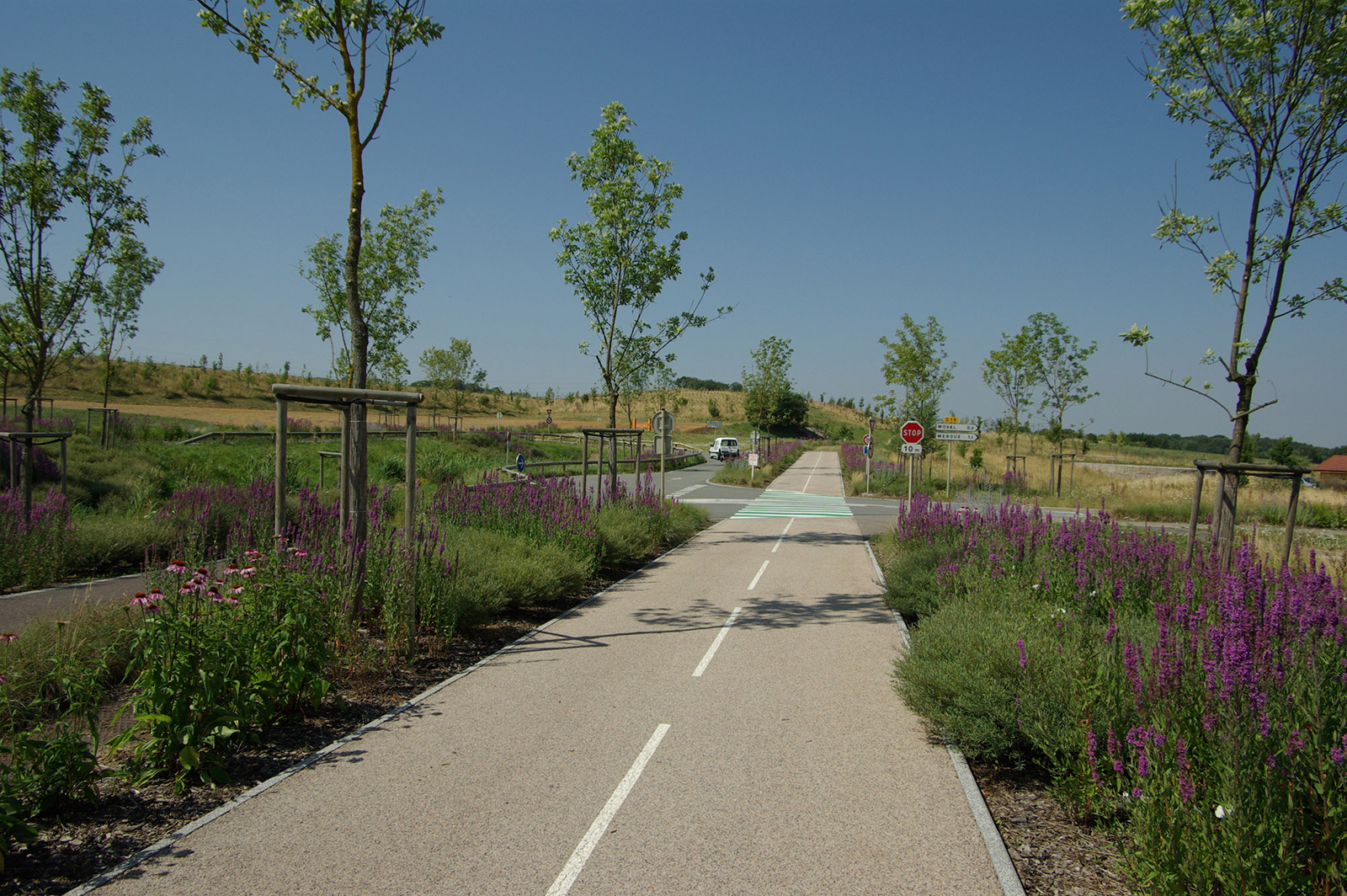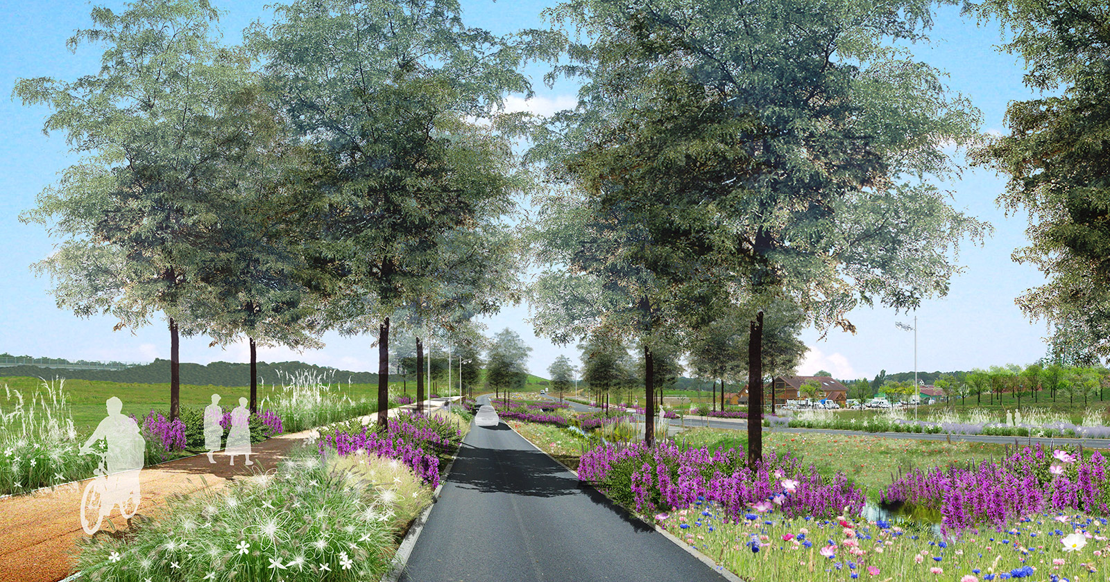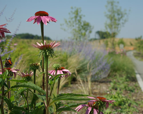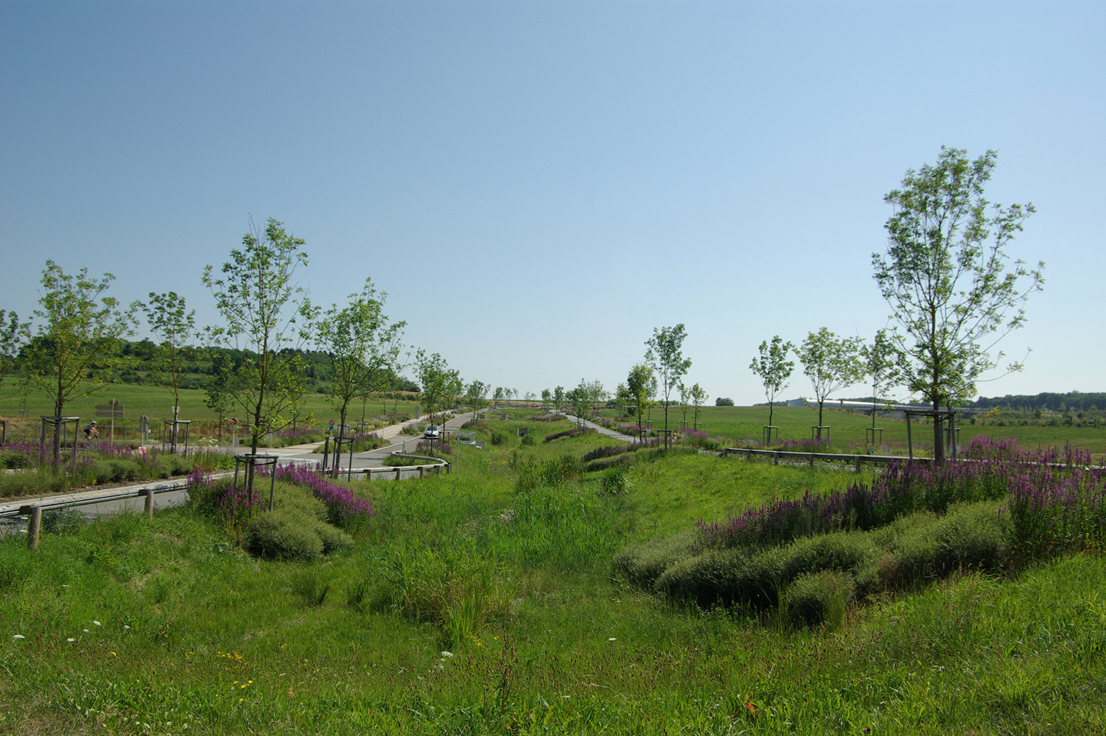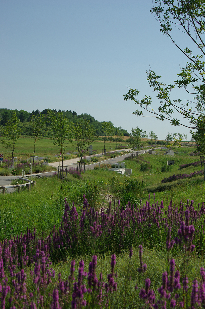 Il était important de réussir à retrouver un nouveau paysage global et cohérent prenant en compte l’ensemble des entités existantes et futures. La configuration paysagère et urbaine a permis de recomposer plusieurs milieux riches et diversifiés : noue, bassin, ruisseau, zone humide, espace urbain …