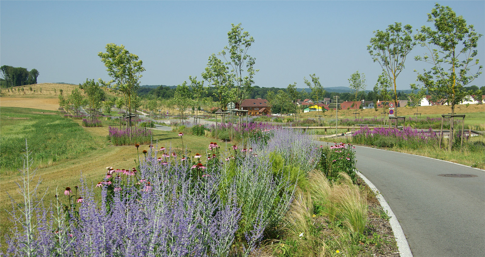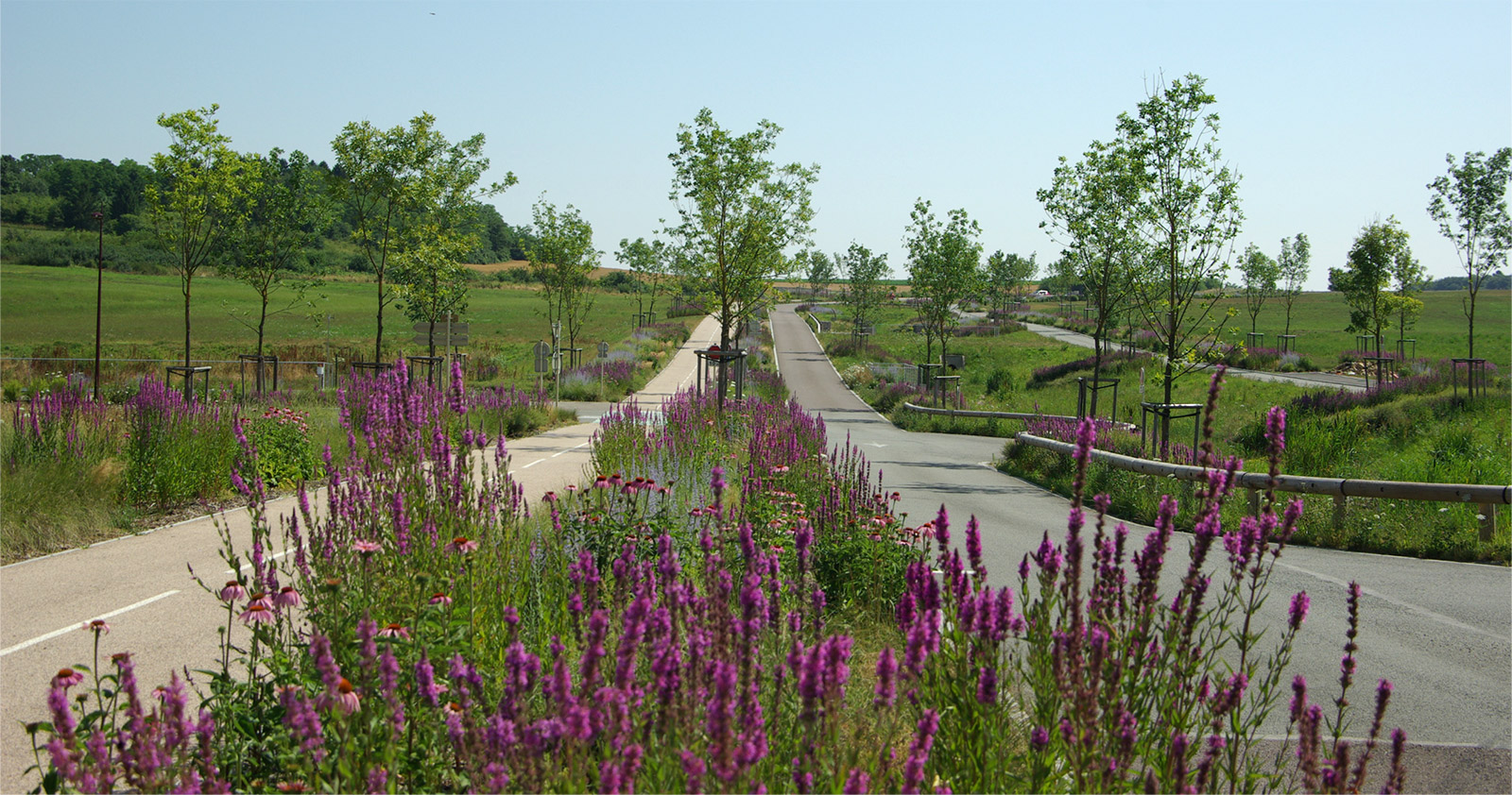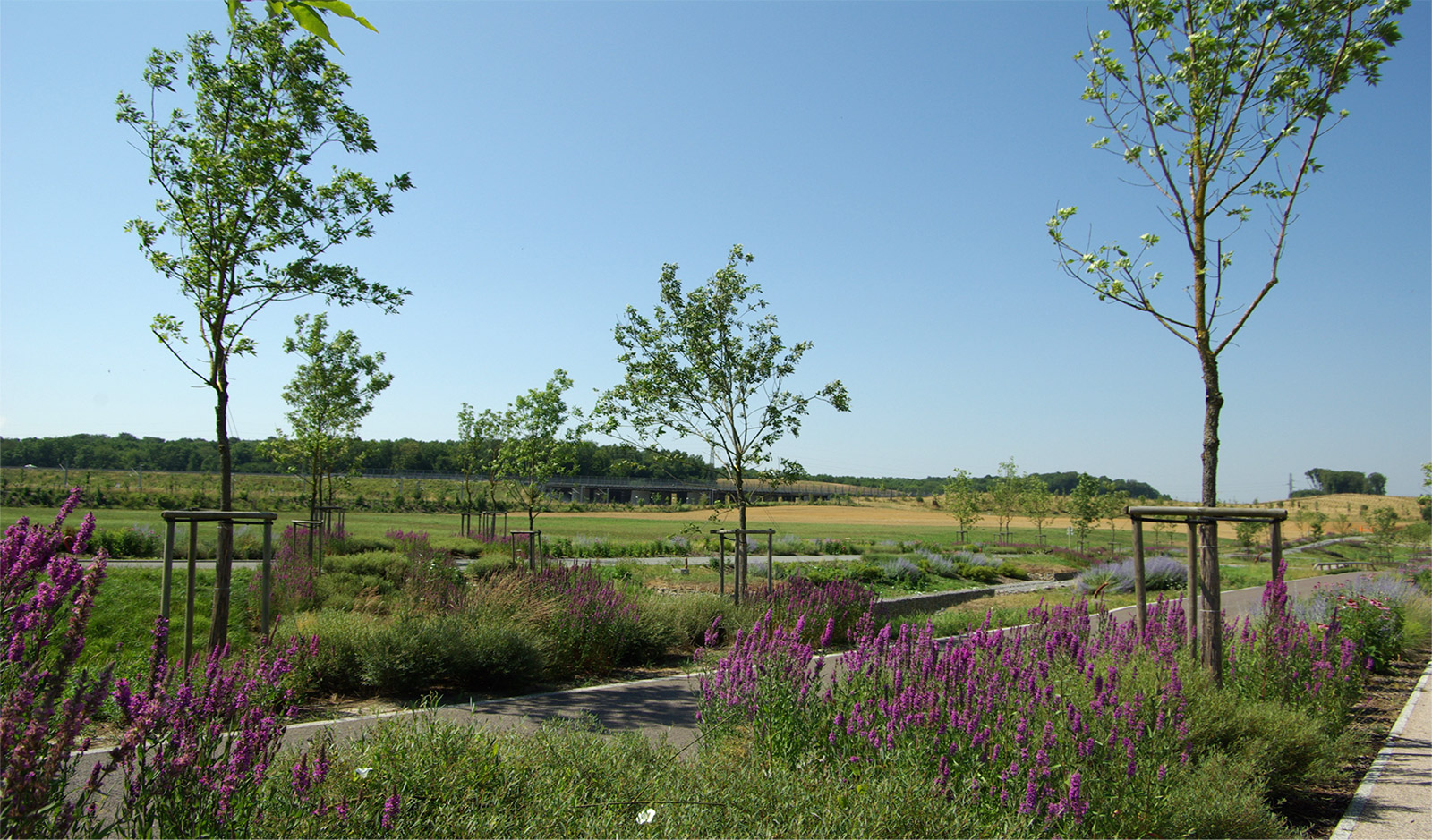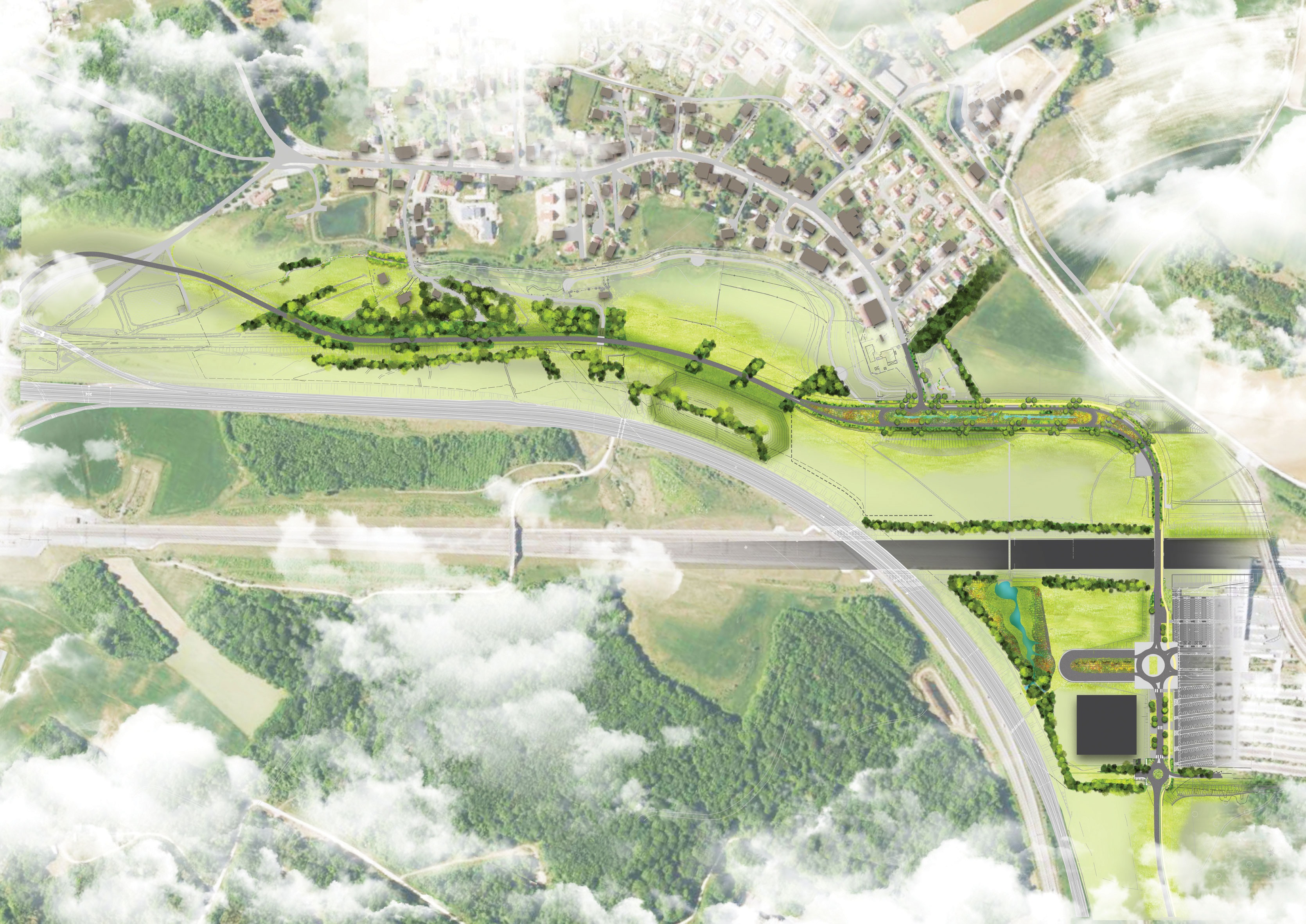 L’enjeu paysager initié à la ZAC TGV de Belfort/Montbéliard va bien au-delà de la simple cicatrisation des entités végétales perturbées. L’enjeu du projet n’était pas de retrouver un paysage mais bien d’en recomposer un nouveau sur les bases des enjeux et opportunités offertes par le passage du TGV.
